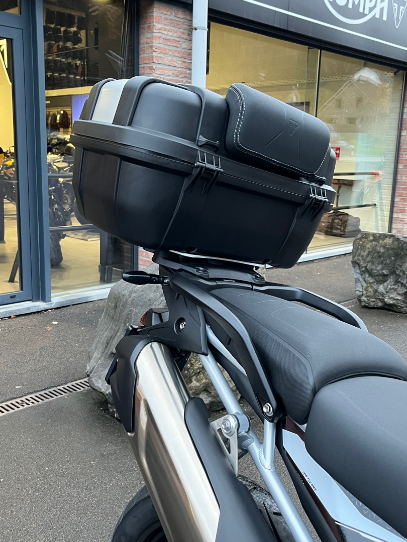 En plus de son équipement déjà très complet, elle est équipée d'un top case pour deux casques.